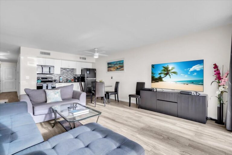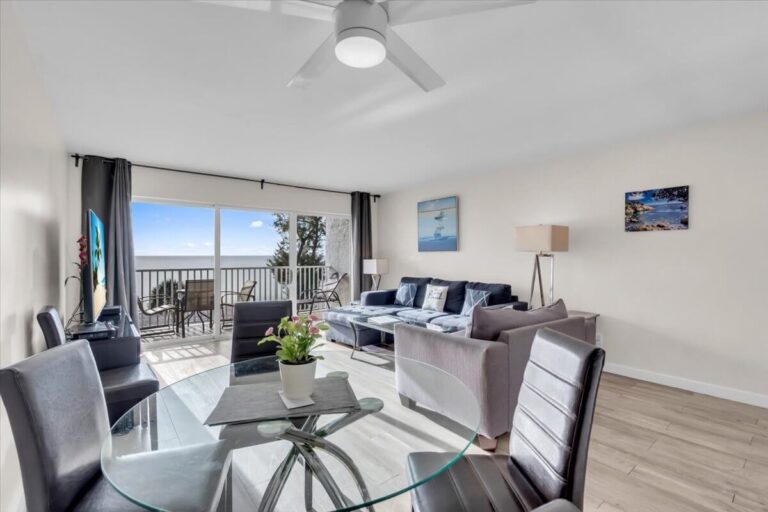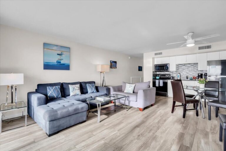 A complete kitchen with full-size appliances gives you the freedom to prepare anything from casual beach bites to elegant evening meals at your own pace.