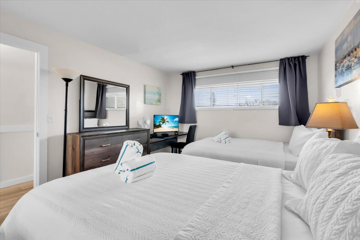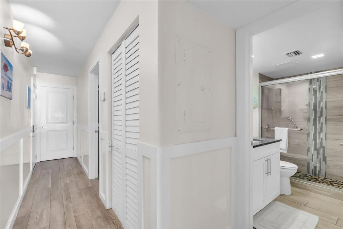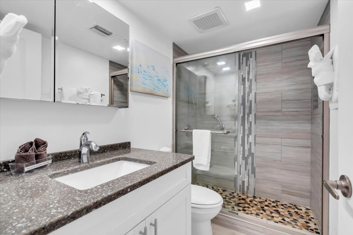A well-appointed bathroom is just steps away, featuring a spacious walk-in shower — the perfect place to rinse off and unwind after a day in the sun.