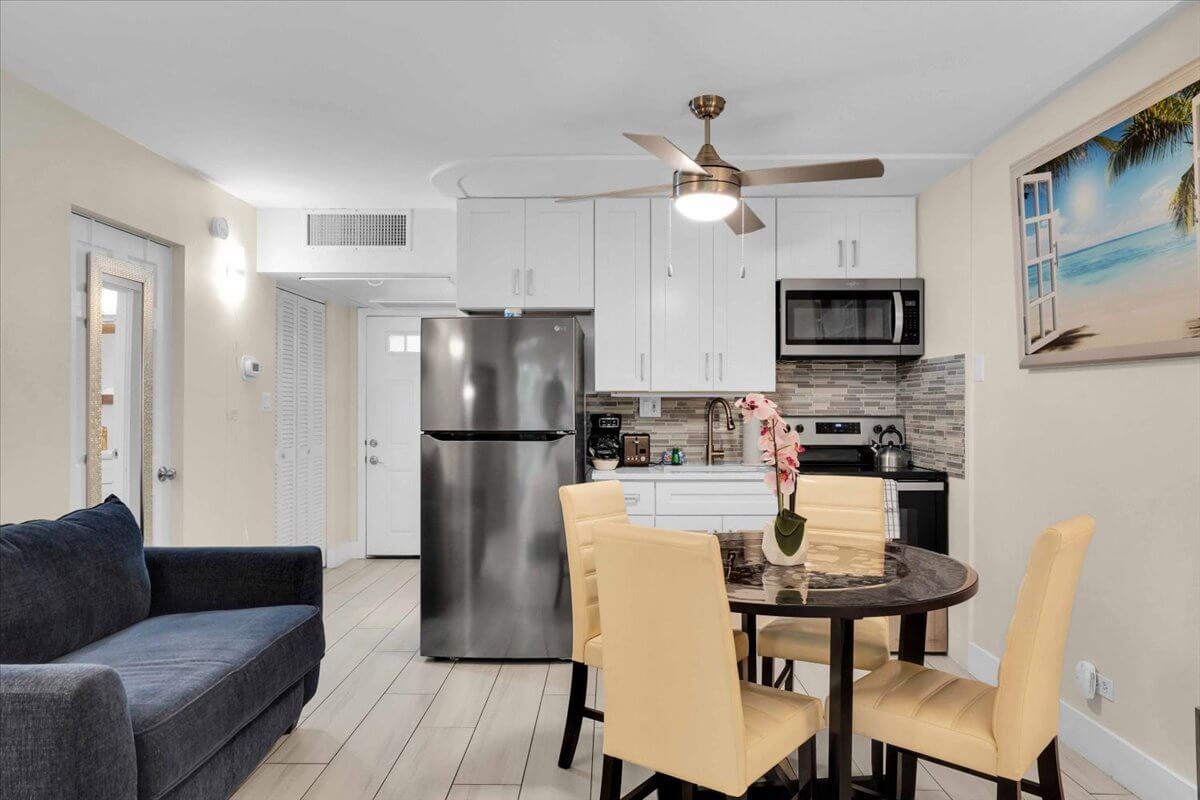 A complete kitchen with full-size appliances gives you the freedom to prepare anything from casual beach bites to elegant evening meals at your own pace.